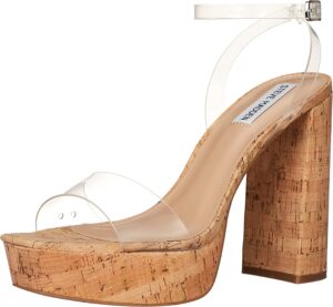 100% sintético Made in the USA or Imported Suela de Sintético Steve Madden Parte superior, forro y suela sintéticos Diseño cuadrado de punta abierta Cierre de hebilla ajustable en el tobillo Tacón de bloque de plataforma de 4.75 pulgadas