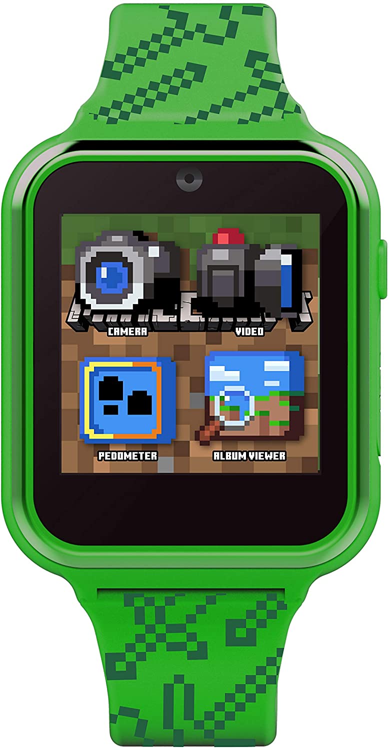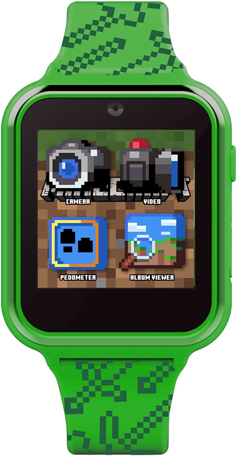 Accutime Microsoft Minecraft Green – Reloj inteligente educativo con pantalla táctil para niños, niñas, niños pequeños, cámara selfie, juegos de aprendizaje, alarma, calculadora, podómetro y más (modelo MIN4045AZ), forro polar verde con licencia oficial de star wars silent one crew., 40mm, Moderno