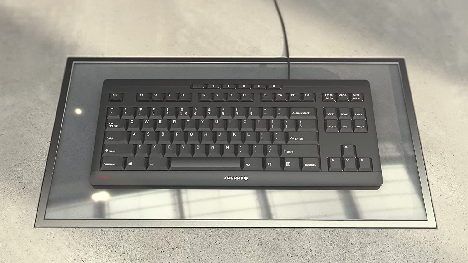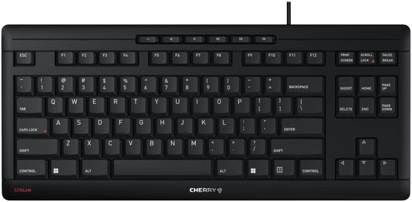 CHERRY Teclado Stream TKL Teclado USB con cable TenKeyLess Versión compacta sin teclado numérico. Pulsación súper silenciosa. Ideal para oficina y uso industrial.