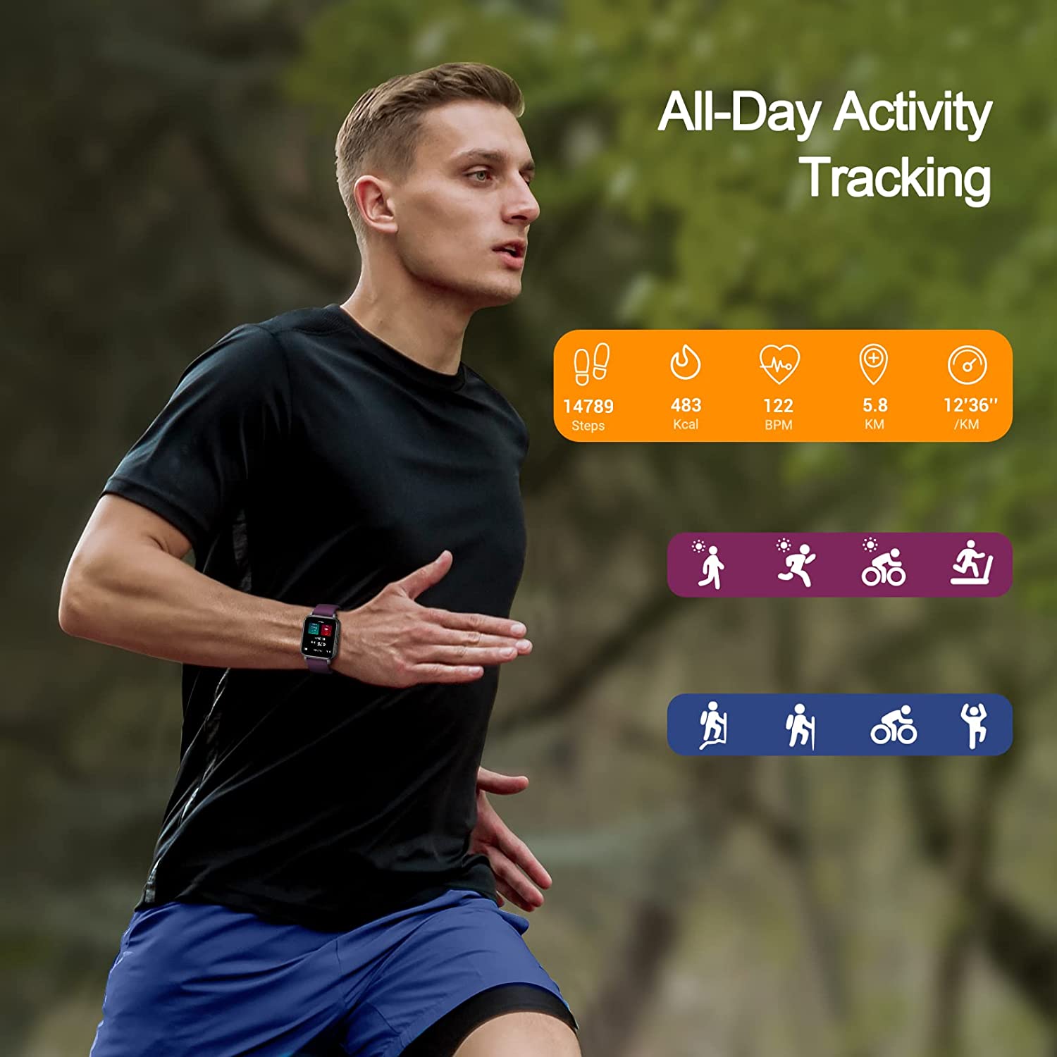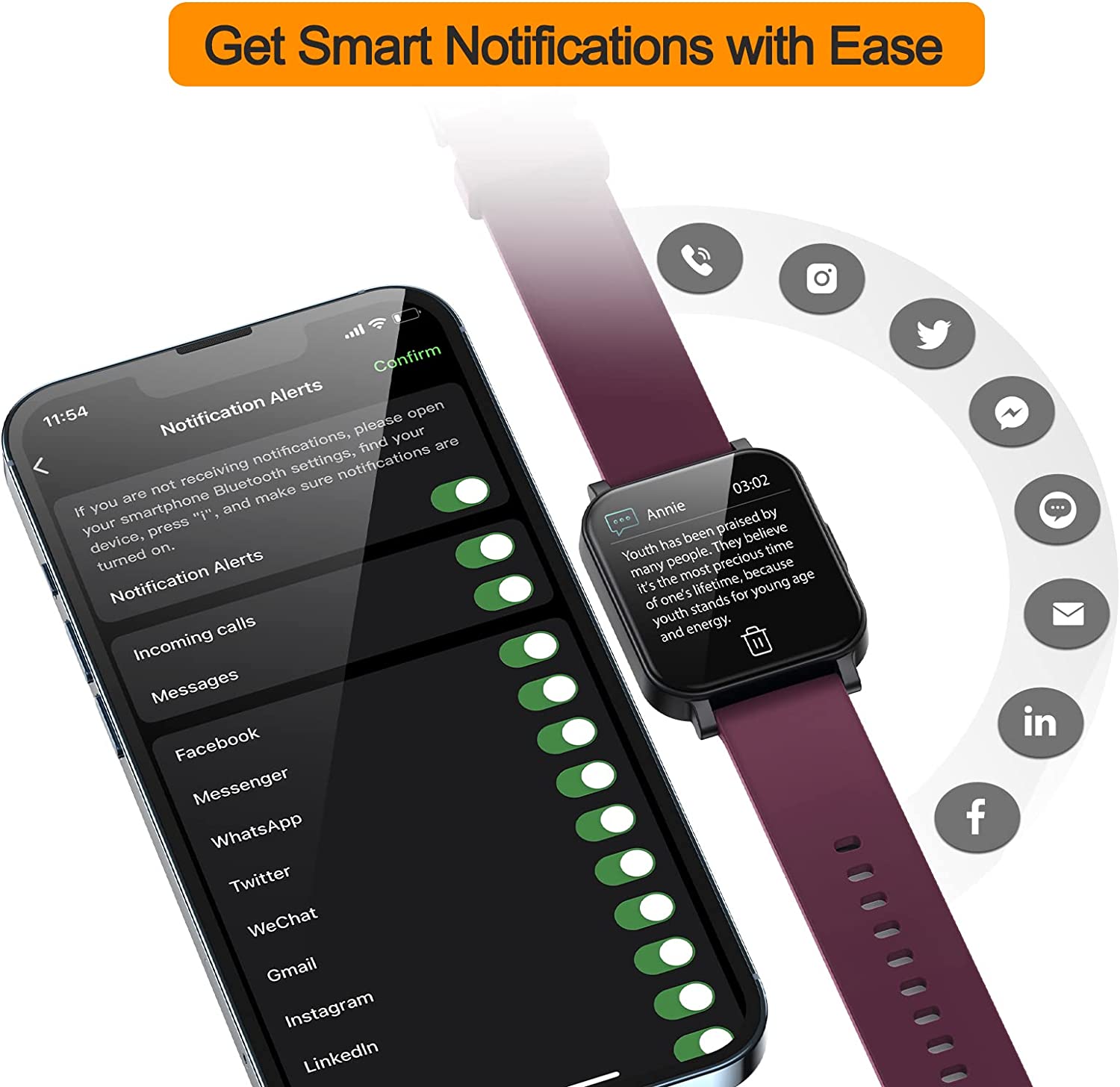 Sobre este artículo 24 horas de sueño de frecuencia cardíaca y monitoreo SpO2 el reloj inteligente Eurans puede controlar automáticamente tu frecuencia cardíaca en tiempo real cada 5 minutos y detectar manualmente tu saturación SpO2. También puede rastrear automáticamente tu sueño a través del reloj inteligente y nuestra aplicación y analizar la calidad de tu sueño (sueño profundo, sueño ligero y tiempo de despertar) para ayudarte a desarrollar un estilo de vida más saludable. Rastreador de fitness con 8 tipos de modos deportivos nuestros relojes inteligentes para mujeres y hombres soportan 8 tipos de modos deportivos, incluyendo caminar, correr, bicicleta, yoga y mucho más. Puedes grabar y comprobar datos de actividades durante todo el día como pasos, distancia, calorías quemadas, millas caminadas. Este rastreador de actividad multideporte te permite comprobar los datos de actividad del deporte todos los días y ayudarte a mantener hábitos saludables (como ejercicio). Esfera personalizable cuenta con una pantalla LCD a color de 1.4 pulgadas con 5 elegantes caras de reloj más 90 caras de reloj integradas para que elijas. Además, admite esferas de reloj personalizables con tus imágenes favoritas y combina con tu estilo. La interfaz te permite comprender tu salud de forma más intuitiva mostrando tus datos deportivos de forma vívida y de la manera que quieras. Nuestra aplicación es compatible con smartphones que usan iOS 11.0/Android 6.0 o superior y Bluetooth 5.0 o superior. Notificaciones inteligentes todos tus mensajes y notificaciones se enviarán directamente a tu muñeca con vibraciones intuitivas personalizables. También puedes comprobar las llamadas entrantes y rechazarlas cuando estés ocupado. y también puedes disfrutar plenamente de otras excelentes funciones inteligentes como control de música, ajustes del temporizador, encontrar tu teléfono, recordatorio sedentario y mucho más. (Nota Los mensajes se enviarán a tu reloj solo si “Alertas de notificación” está habilitada en la aplicación) Hasta 10 días de autonomía de la batería con IP68 Resistente al agua con una excelente duración de la batería, el reloj inteligente puede realizar un seguimiento de su estado durante hasta 10 días sin dejar de recargar. Nuestro reloj inteligente también cumple con los estándares de impermeabilidad IP68, lo que significa que puedes usarlo sin preocupaciones mientras nadas.