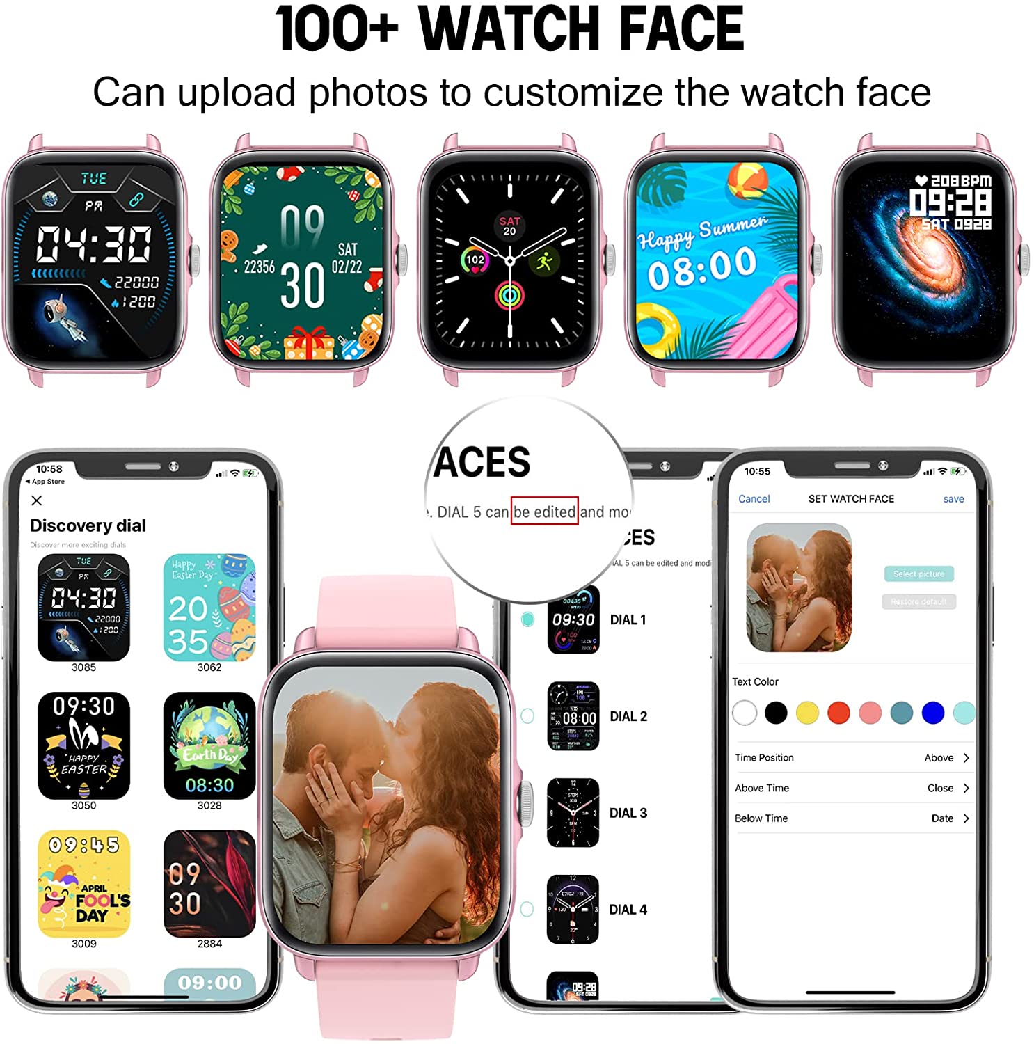 ?Hacer/responder llamadas y leer mensajes?El reloj para teléfono inteligente está equipado con un altavoz de alta calidad, a través de la conexión Bluetooth, puede utilizar directamente el reloj para responder a hacer llamadas, reproducir música, leer mensajes/almacenar contactos/ver historial de llamadas. El reloj inteligente Android iOS para hombre y mujer también puede configurar el tono de llamada, vibración/tono de llamada + vibración. Nunca te perderás ninguna llamada y mensaje durante reuniones o entrenamiento. (Lee el manual cuidadosamente antes de usar estas funciones para entender cómo conectarse a Bluetooth) Reloj de control de salud para todo el día este reloj de seguimiento de fitness con frecuencia cardíaca y monitor SpO2 registrará tus actividades durante todo el día como pasos, calorías quemadas y distancia recorrida, datos de sueño, también tiene las características de recordatorio de agua sedentaria y potable, soporta múltiples modos deportivos y rastrea todas tus distancias de entrenamiento y condiciones físicas durante el ejercicio. Con este reloj fitnes para hombres y mujeres, puedes tener una vida más saludable y activa Pantalla grande de 1.7 pulgadas y más de 100 esferas de reloj utilizando la última tecnología, este reloj inteligente para teléfonos Android iOS está equipado con una pantalla a color ultra clara de 240 x 280 pulgadas, lo que hace que el reloj de fitness para hombres y mujeres sea más elegante y duradero. Hemos diseñado cuidadosamente una hermosa interfaz de usuario y más de 100 caras de reloj para ti, lo que te permite cambiar los estilos de la esfera del reloj a través de la aplicación en cualquier momento de acuerdo con tu estado de ánimo y ocasión. Batería impermeable IP67 y súper larga el reloj de presión arterial adopta IP67 resistente al agua, que tiene un buen efecto impermeable para la vida diaria, como lavarse las manos, antisudor, antilluvia, etc. (No se recomienda remojar el reloj inteligente Android en agua o colocarlo en un entorno de vapor de agua). Este reloj de actividad deportiva está equipado con una batería de gran capacidad de 235 mAh, equipada con un cargador de carga rápida, que se puede utilizar durante 5-7 días cuando está completamente cargado, y el tiempo de espera es de más de 10 días. Multifuncional y amplia compatibilidad nuestro reloj inteligente para teléfono Android iOS tiene muchas características como, información meteorológica, reproducción/control de música, control de cámara, reloj despertador, cronómetro, entrenamiento de respiración, juego. Puede soportar la mayoría de teléfonos Android e iOS (Android 5.0 y superior iOS 9.0 y superior). Como iPhone13/mini/pro/pro max/12/mini/pro/pro/pro max/12/mini/mini/pro/pro/pro/pro/mini/pro/pro/pro/pro/pro/pro/pro max/11/11/Pro/Max/Pro Max/XS/X/8/8 Plus/7/7 Plus/6/6s/6 Plus/6s Plus/5/se/5S/5C, Sa*msung Galaxy, Google Pixel/Pixel XL, HTC, LG, HU*AWEI, ZTE, OPPO, Vivo, etc.